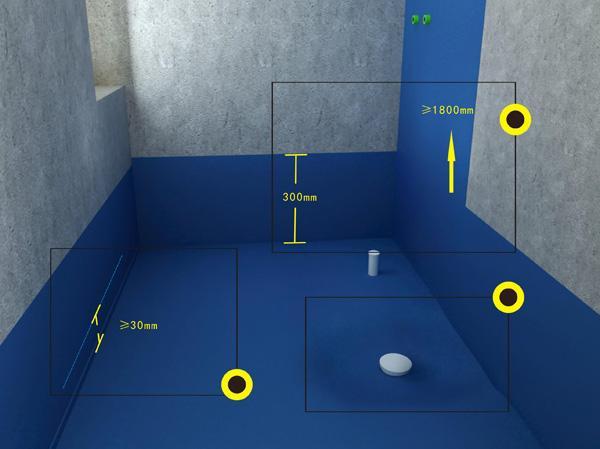 一是防水部位要全面;二是防水层施工要求严格按照产品说明书涂刷并刷够一定的厚度;三是施工过程要细致,墙面与地面的接缝处、阴阳角、水管、地漏和卫生洁具的周边是重点防水部位,施工是必须要细致。